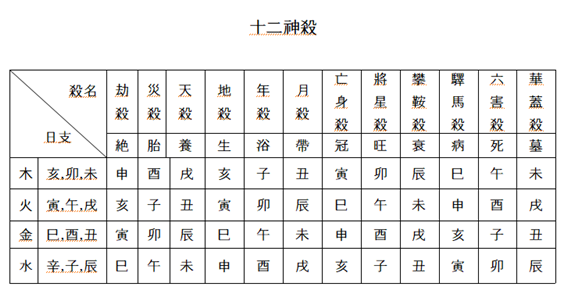 신살의 어원은 도가(道家) 천문성(天文星)에 유래되었다고 합니다.